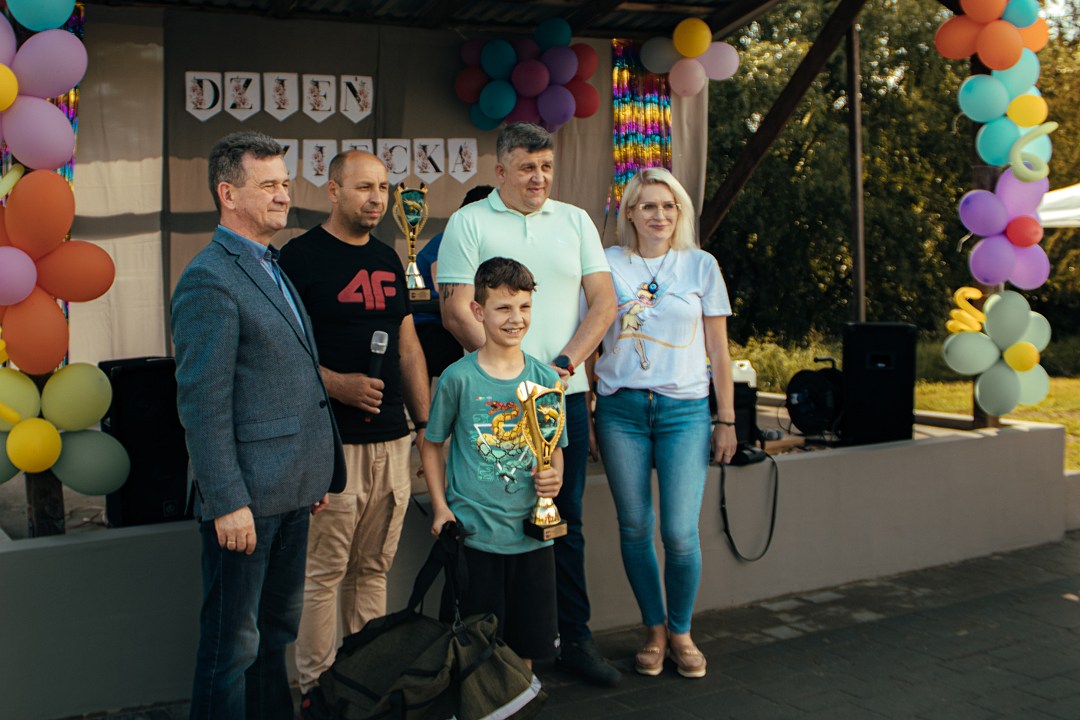 Po południu spotkaliśmy się na obiektach LZS Przędzel, gdzie na dzieci czekało mnóstwo atrakcji, były m.in.: dmuchańce, pokazy straży pożarnej, słodki poczęstunek od Koła Gospodyń Wiejskich „Przędzelanki”, fotobudka, w której powstało wiele radosnych pamiątek! Zostały wręczone także nagrody i puchary dla uczestników porannych zawodów.